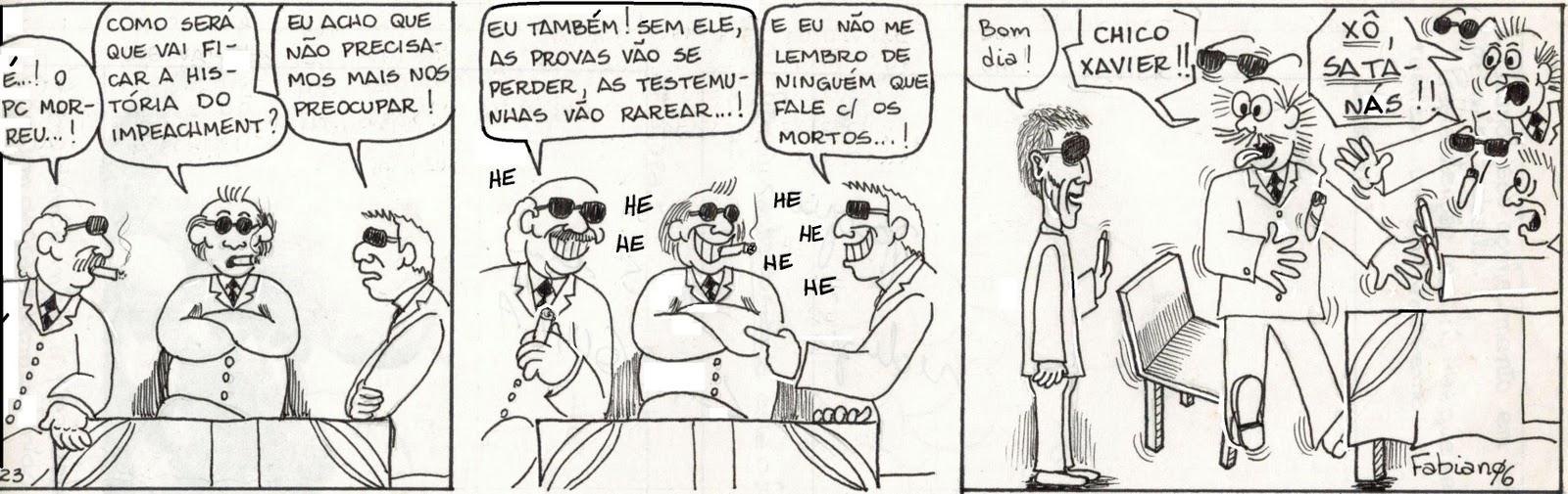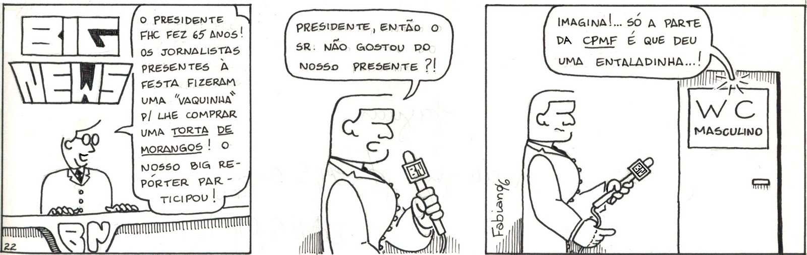 Nesta última sequência de cartuns da Big News - Era FHC, destaque para a morte de PC Farias.