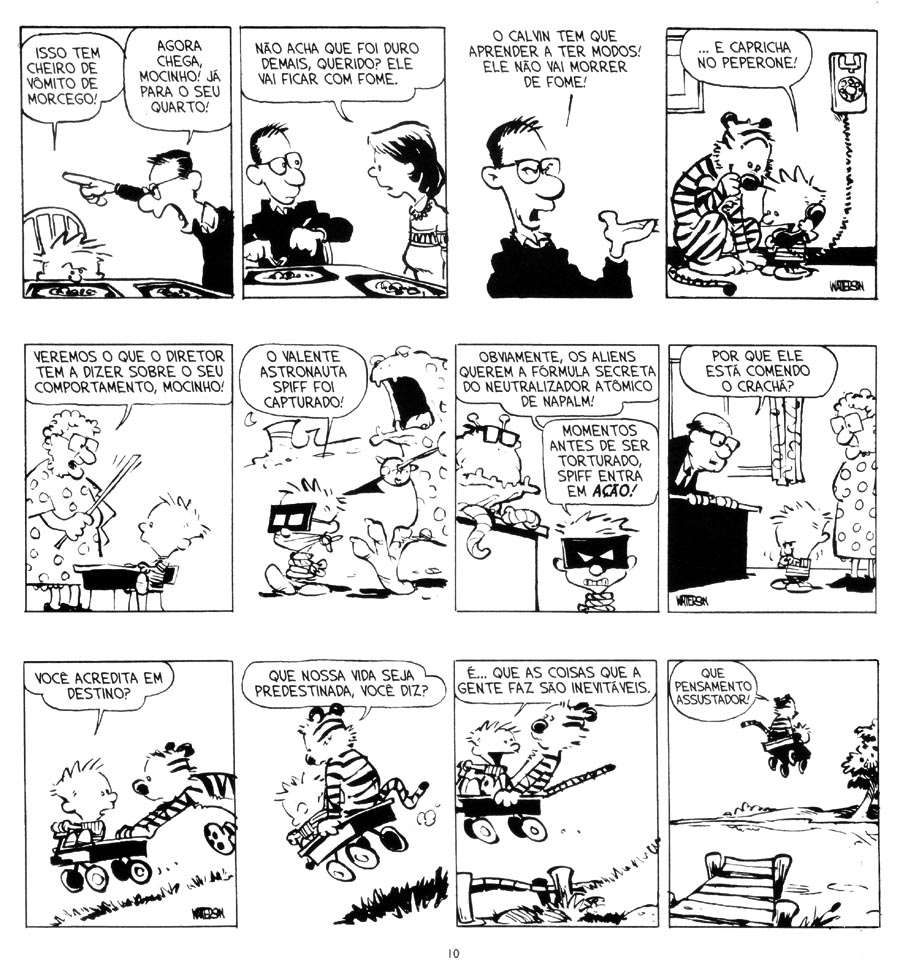 Aqui, os primórdios do Calvin. Desde lá, suas características mais marcantes se mostram: hiperativo, sonhador, questionador, inconstante, tímido, gracioso, maluquinho.