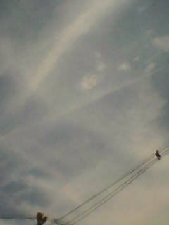 Mas hoje, 19/10, segunda feira, tudo voltou ao 'normal': vindo para o trabalho (Surpresa!), vi mais dois rastros químicos. Mas essas coisas, segundo um aviador que conheci há um mês, são bobagens. Ele afirmou que não passam de efeitos das turbinas do avião. Inclusive, me deu uma explicação técnica de como funciona uma turbina (coisa de expert). Quase me convenceu.